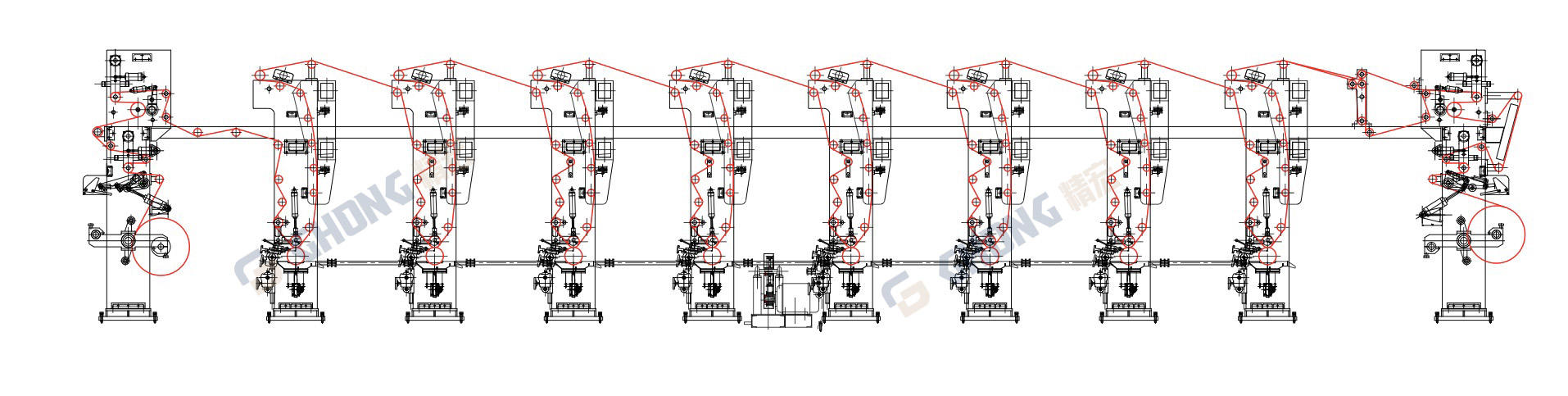 9. Reeling and unreeling reel by tumbling dual-station mechanism, realizing material change without machine halt.